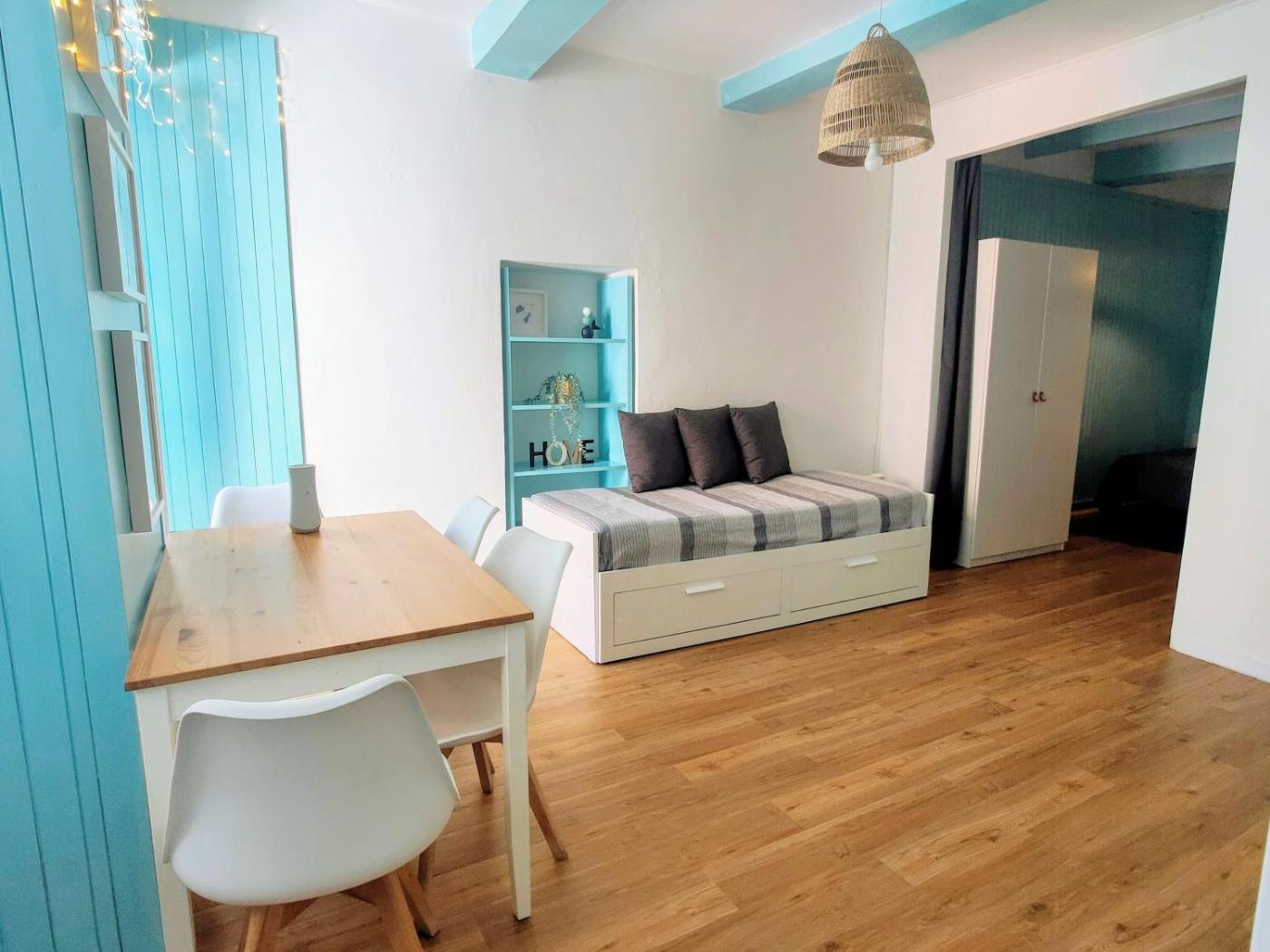 Questo appartamento con aria condizionata comprende 1 camera da letto, un soggiorno, una cucina con utensili piĂą frigorifero, e 1 bagno con bidet e asciugacapelli.