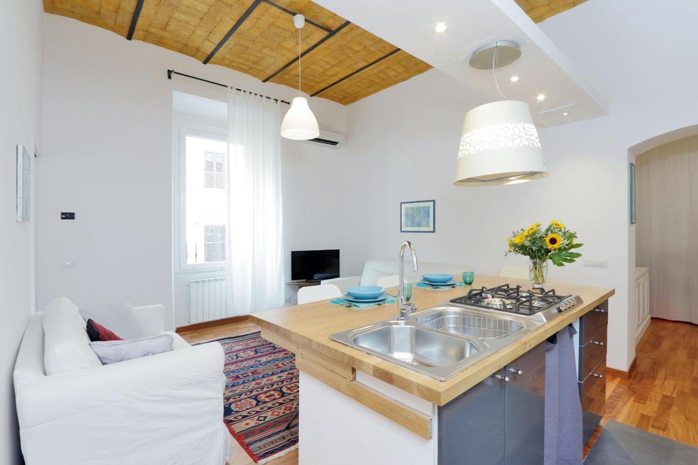 Questo appartamento con aria condizionata comprende 1 camera da letto, un soggiorno, una cucina con utensili, frigorifero e macchina da caffè, e 1 bagno con bidet e doccia. Presso questo appartamento troverete asciugamani e lenzuola in dotazione.